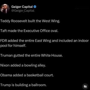 Every time Trump breaks the law and tramples the Constitution, his followers make excuses for him. The White House East Wing situation is no different. From MAGAs: For more than a century, U.S. Presidents have been renovating, expanding, and modernizing the White House to meet the needs of the present day. The Information They’re Leaving Out Theodore Rooseveltβs West Wing…