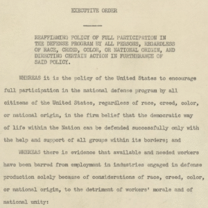 President Roosevelt’s Executive Order 8802, June, 1941