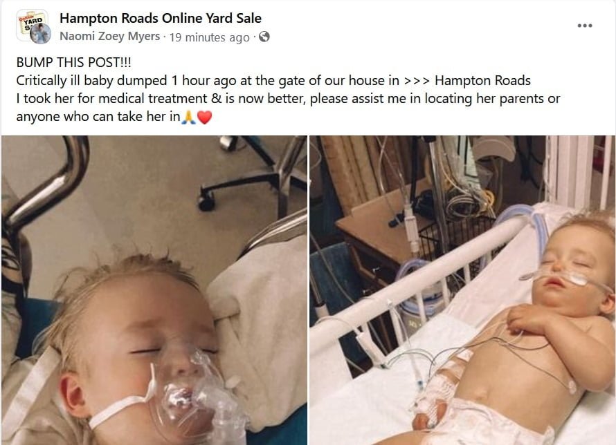 These are posted by fake profiles, almost always in buy-sell-trade groups. These are designed to pull the heart strings, and people will share the post to their own timeline to help out the person who posted the scam. After the post gets shared a zillion times, the scammer changes it to an ad designed to make people click the link so they can get scammed or hacked.